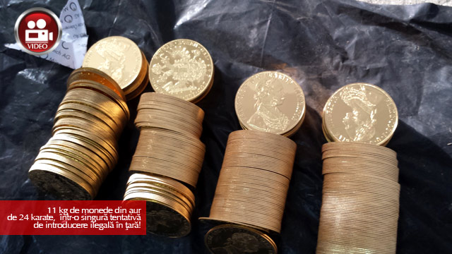 Poliţiştii de frontieră timişeni au descoperit, ascunse în autoturismul unor cetăţeni români care veneau din Austria, 800 de monede din aur de 24 de karate. Monedele, în greutate totală de 11,2 kg, au fost predate Trezoreriei Statului, în vederea expertizării detaliate, informează Inspectoratul Teritorial al Poliţiei de Fontieră Timişoara.