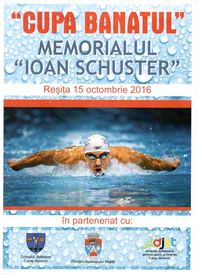 Primăria Municipiului Reșița și Clubul Sportiv Școlar Reșița organizează astăzi “Cupa Banatul” – Memorialul “Ioan Schuster”, care va avea loc la Centrul Municipal de Sport și Sănătate din Lunca Bârzavei (Govândari, Bazinul olimpic).