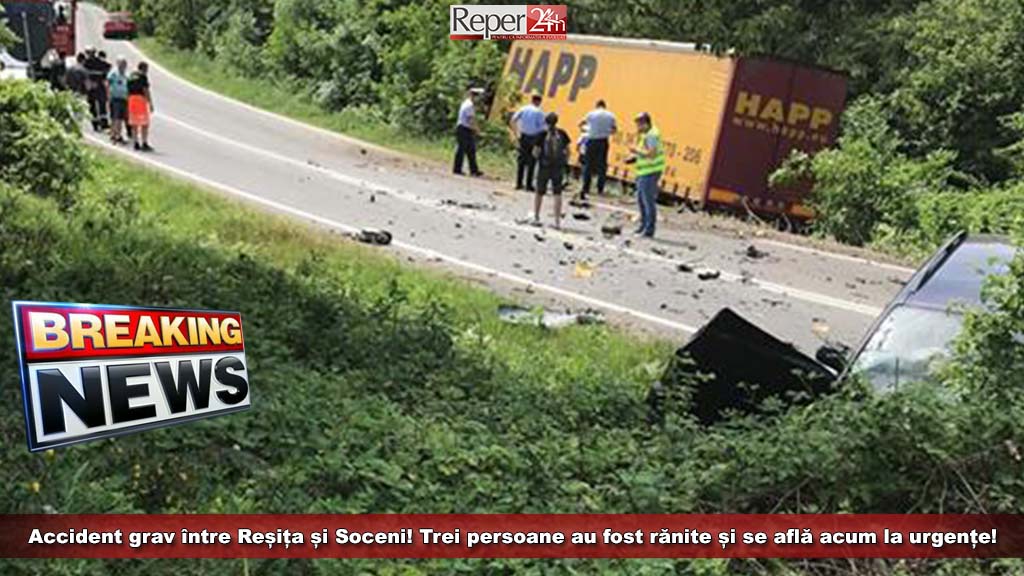Un accident grav de circulație s-a petrecut în această după-amiază pe Drumul Național 58B, la ieșirea din Reșița spre Caransebeș, într-un viraj din apropierea celebrului Kilometru 8. Din primele date oferite de polițiștii de la Serviciul Rutier, se pare că un autoturism Mazda, care circula dinspre Reșița spre Caransebeș, a intrat pe contrasens și a acroșat un alt autoturism marca Ford, care venea spre Reșița. Autoturismul Mazda a intrat în derapaj necontrolat și a lovit cu partea dreapta-spate un tir care se deplasa spre Reșița.