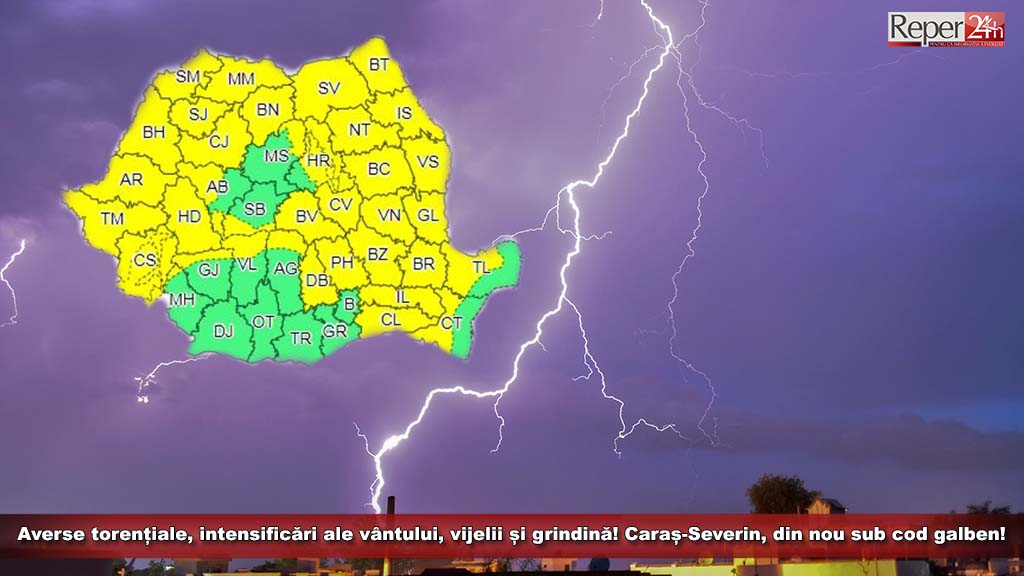 Administrația Națională de Meteorologie a emis un nou cod galben de averse torențiale și vijelii valabil pentru marea majoritate a țării. De asemenea, a fost prelungită până vineri seara informarea de vreme rea.