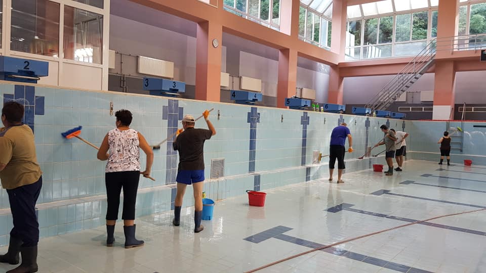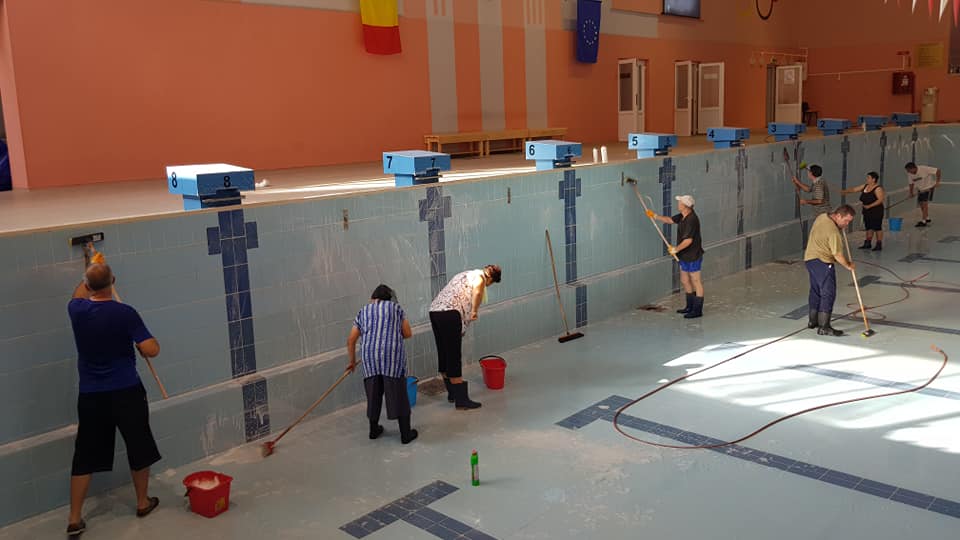 Pe perioada închiderii, întreaga cantitate de apă va fi schimbată, iar cuva bazinului va fi tratată cu substanțe special destinate acestui scop. Toate lucrările suntexecută în regie proprie, cu personalul Complexului Municipal de Sport și Sănătate