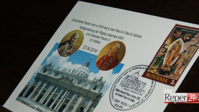 Pe tot parcursul evenimentului de la Biserica Romano-Catolică „Maria Zăpezii“ din Reşiţa a fost organizată o expoziţie filatelică intitulată „Papa Ioan Paul al II-lea şi Papa Ioan al XXIII-lea“, cu exponate din colecţia Erwin Josef Ţigla. Cu acest prilej, Asociaţia Germană de Cultură şi Educaţie a Adulţilor din Reşiţa a editat un plic special şi a realizat o ştampilă filatelică ocazională care va fi pusă pe toată corespondenţa a plecat sâmbătă din municipiul Reşiţa, având în vedere faptul că duminică unităţile poştale nu sunt deschise publicului. Ştampila filatelică ocazională pusă în circulaţie la Reşiţa cu ocazia canonizării celor doi papi a fost aprobată de Federaţia Filatelică Română şi de Poşta Română, la propunerea Asociaţiei Germane de Cultură şi Educaţie a Adulţilor. Din comunitatea reşiţeană au fost prezenţi duminică la Roma nouă participanţi coordonaţi de prof. Christine Maria Surdu, organista bisericii catolice „Maria Zăpezii“, însă din România vor participa credincioşi în număr mult mai mare, a mai spus Erwin Josef Ţigla.