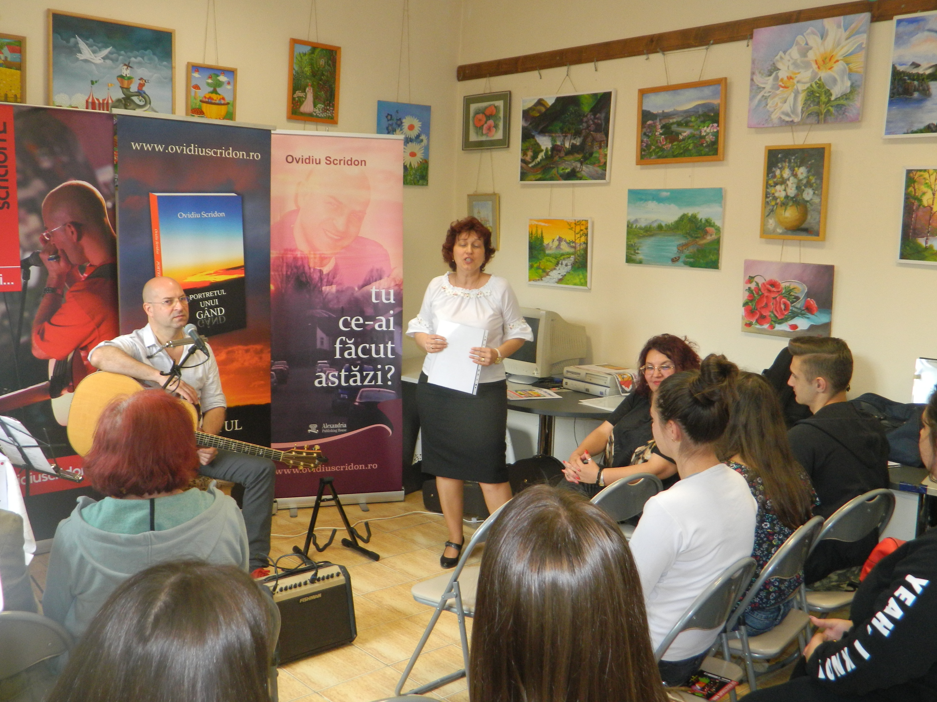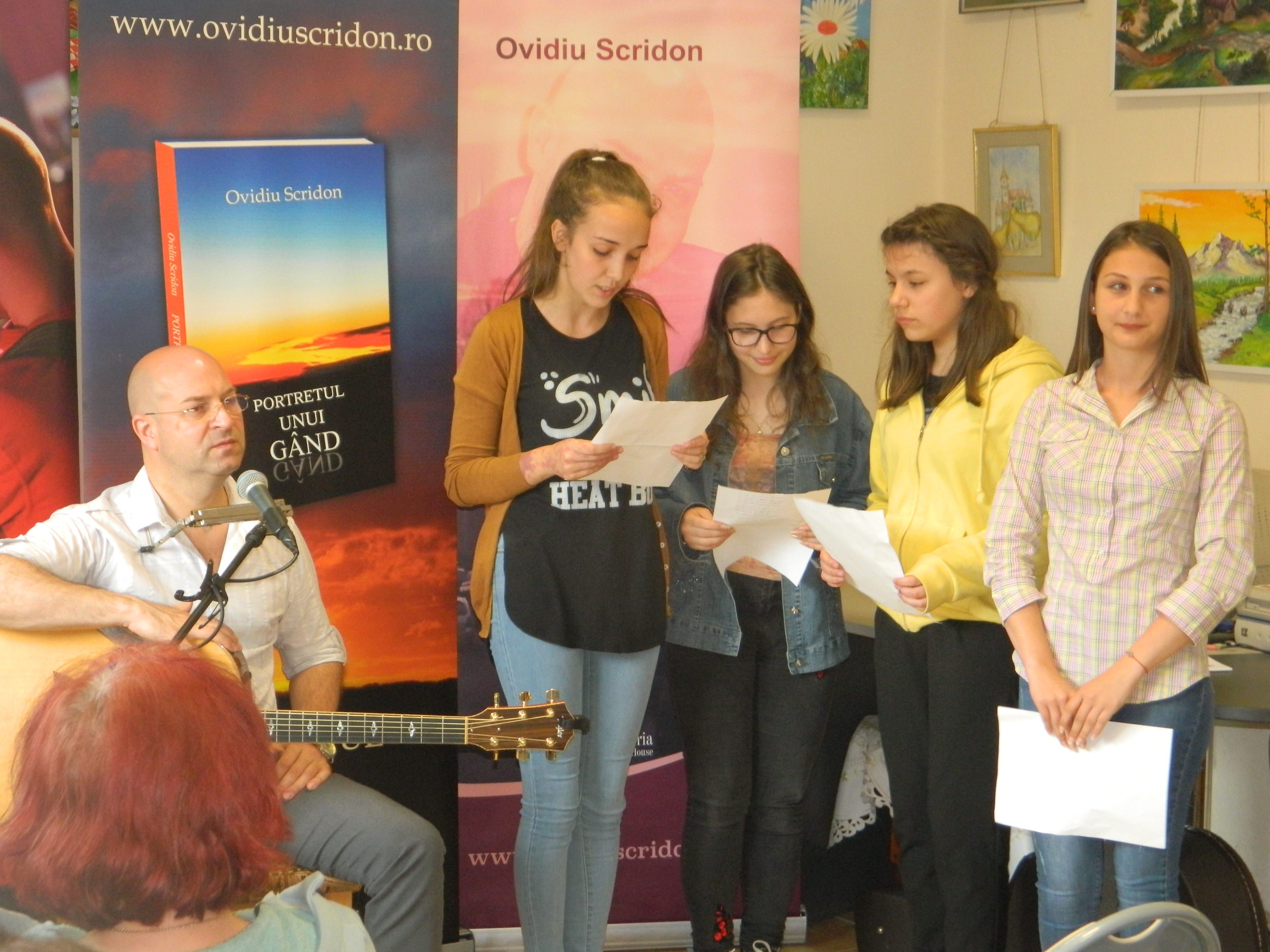 În public au fost prezenți și tineri ai Liceului Teoretic „Tata Oancea” însoțiți de dna. prof. drd. Liana Ferciug, tineri care au recitat din volumele invitatului și au intonat alături de acesta melodii cunoscute din muzica folk. Timp de două ore sala Biblionet s-a transformat într-o adevărată sală de concert.
