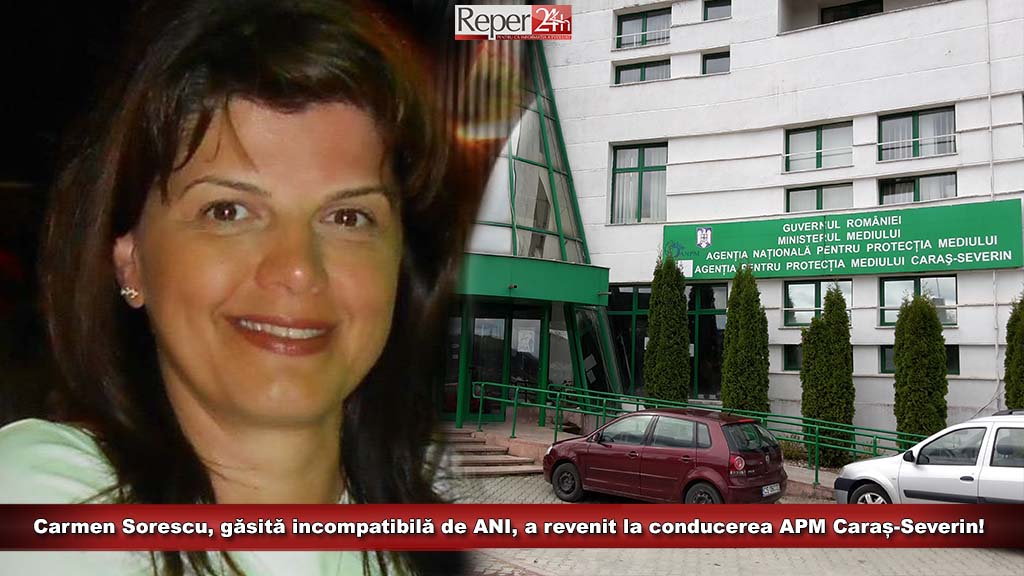 Schimbare la conducerea Agenției pentru Protecția Mediului din Caraș-Severin unde a revenit de săptămâna aceasta fostul director Carmen Sorescu. Sorescu a fost numită la conducerea instituției printr-o decizie a președintelui Agenției Naționale pentru Protecția Mediului, în ciuda faptului că a fost declarată incompatibilă de către ANI. Fostul director Mihai Dănuț Cepeha fusese numit la conducere, prin detașare de la APM Timiș pe o perioadă de 6 luni.