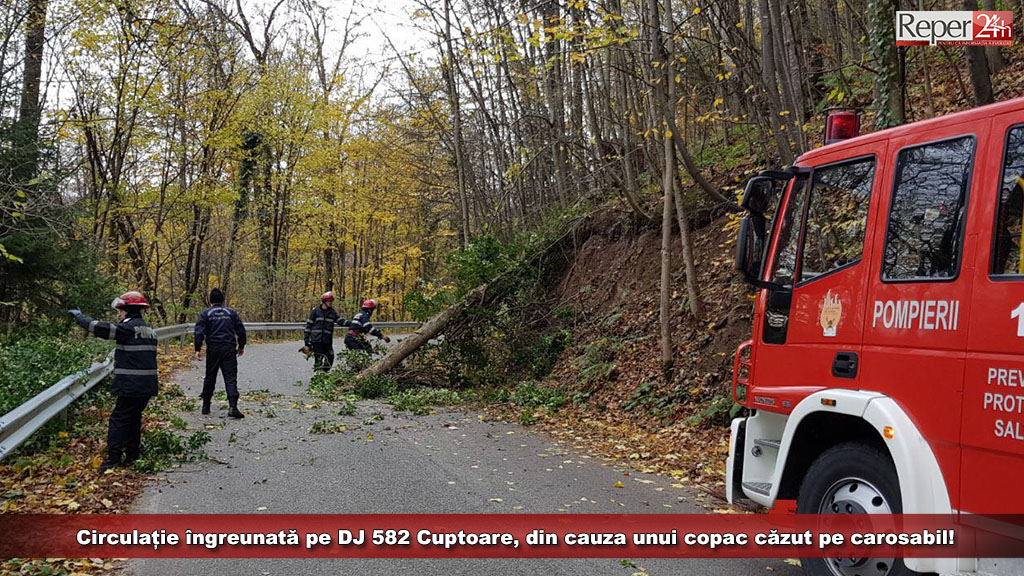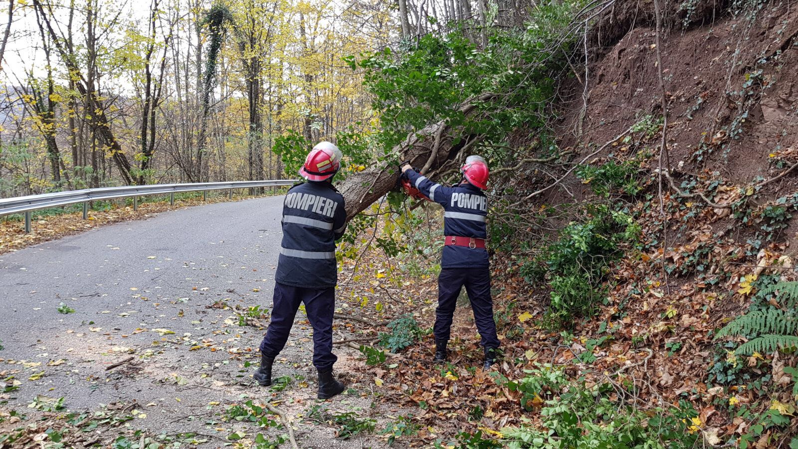 Pentru înlăturarea copacului au intervenit reprezentanții Detașamentului de Pompieri Reșița.
