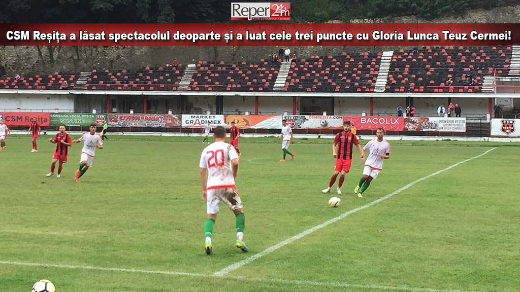 Echipa de liga III, CSM Reșița a câștigat întâlnirea din etapa a V-a a seriei a IV-a, Liga III de fotbal, în fața formației arădene Gloria Lunca Teuz Cermei, după un joc în care reșițenii au alergat din primul minut și până la momentul fluierului final al arbitrului după victorie. Nu am greși cu nimic dacă descrie jocul rosso-nerilor folosind celebra expresie a liderului comunist de dinainte de 89 și anume că echipa din Valea Domanului nu a precupețit niciun efort pentru atingerea obiectivului vizat, cele trei puncte importante din economia clasamentului.