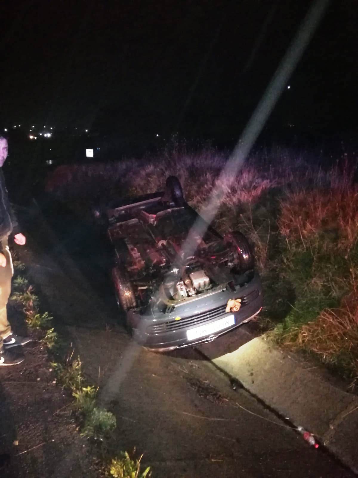 Al doilea accident a avut loc în jurul orei 01:10, la intrarea în localitatea Slatina Timiș, unde un autoturism s-a răsturnat pe plafon, în afara părții carosabile, în șanțul de pe marginea drumului.