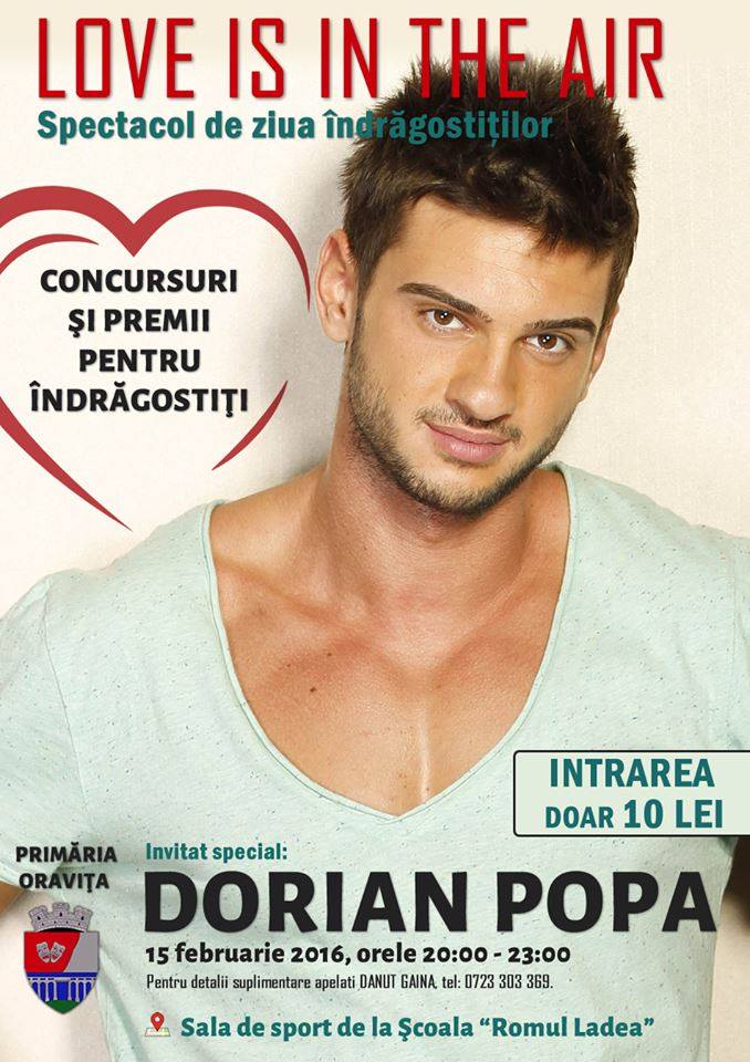 Începând cu ora 20, îndrăgostiții din Oravița vor avea parte de un spectacol cum n-au mai văzut de mult. Dorian Popa vine să le cânte dragostea într-un concert de zile mari.