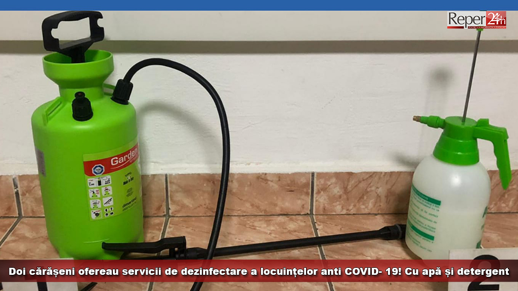 „Ieri, 25 martie, în jurul orei 17.00, polițiști de la Secția 5 Poliție Rurală Bocșa au depistat pe raza satului Ersig doi bărbați de 28 și 29 de ani, din Reșița și Bocșa, care se deplasau prin localitate având asupra lor două recipiente de pulverizat substanță lichidă, care conțineau un amestec de apă și detergent de rufe, propunând cetățenilor să le dezinfecteze locuințele împotriva răspândirii virusului COVID -19, în schimbul unei sume de bani.