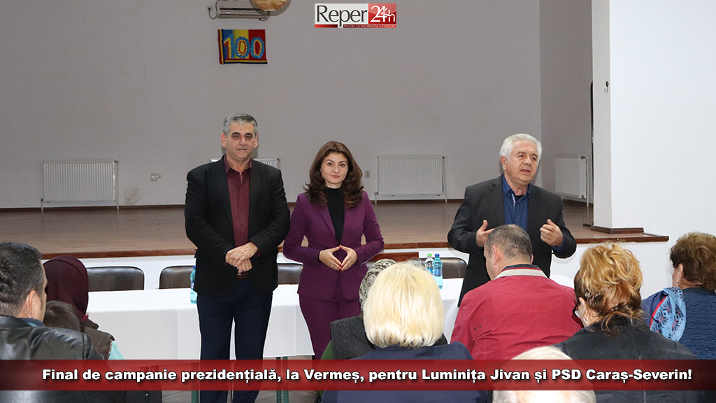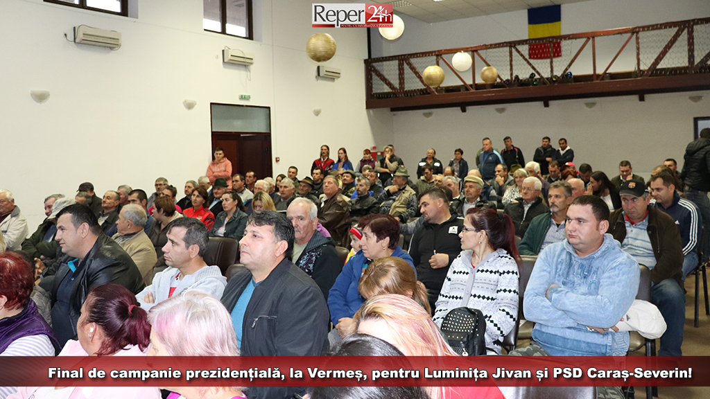 Ultima zi de campanie electorală dedicată de conducerea organizației PSD Caraș-Severin alegerilor prezidențiale care se vor desfășura pe data de 10 noiembrie s-a încheiat în localitatea Vermeș, acolo unde aproximativ 200 de cetățeni cu drept de vot s-au adunat la căminul cultural pentru a asculta mesajul electoral al președintelui PSD Caraș-Severin, deputatul Luminița Jivan, al primarului Ion Iacob Damian, al viceprimarului Petrișor Cireșan dar și al vicepreședintelui PSD Ioan Benga.