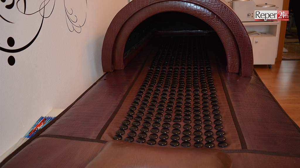 Am aparate pe care lucrez pe tot corpul iar altele dedicate, pentru abdomen, pentru brațe, vă mai pot spune că am un tunel  cu pietre germaniu și infraroșu, benefic pentru sănătate, cu efecte deosebit de bune pentru dureri de spate, articulații, celulită, circulație sanguină,  practic acest aparat din salonul meu este al doilea tunel din țară!