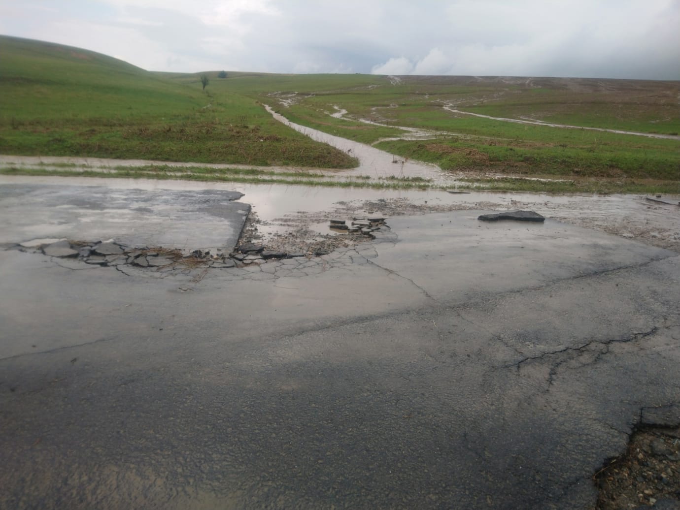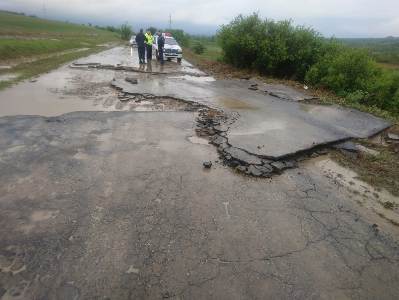 UPDATE 4: Apa s-a retras de pe DJ 571, iar pompierii militari acționează pentru curățarea drumului și degajarea bucăților de asfalt desprinse din carosabil care prezinta pericol pentru trafic.