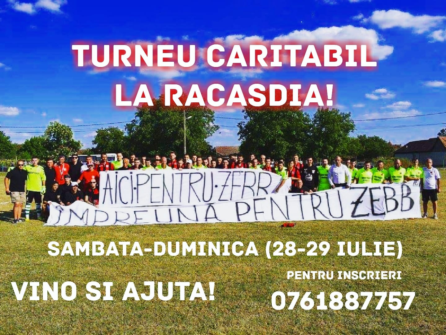 „AS VOINȚA RĂCĂŞDIA organizează în data de 28-29 iulie un turneu de fotbal caritabil pentru Simonovici Zebb, prietenul nostru care anul trecut a suferit un grav accident de mașină. Întrucât costurile pentru tratament sunt foarte mari, iar Zebb are nevoie de ajutorul nostru, haideți să nu rămânem indiferenți și să îi sărim în ajutor”, transmit organizatorii.