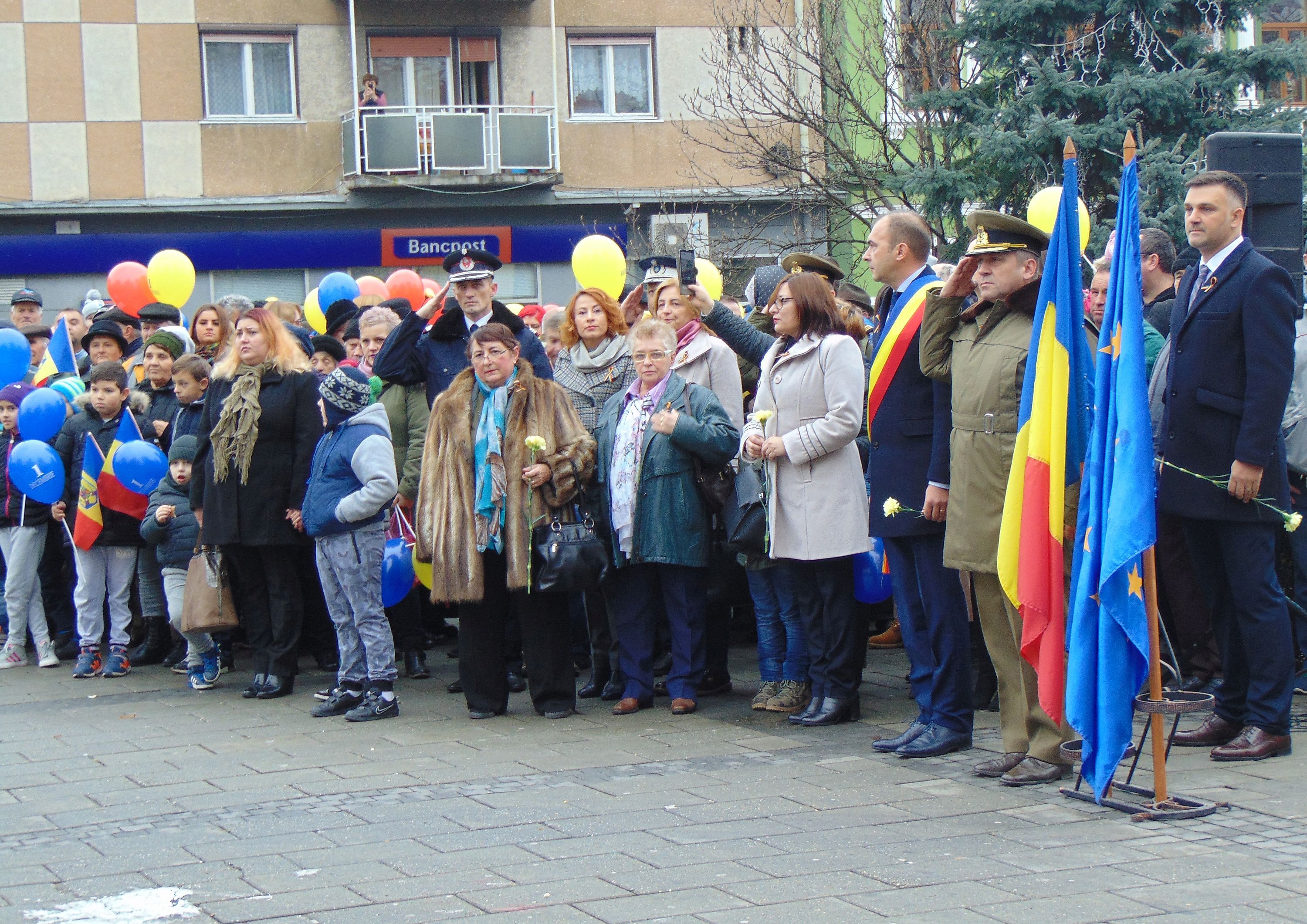 La Caransebeş, festivităţile dedicate sărbătoririi Zilei Naţionale a României au început la ora 12, în Piaţa Revoluţiei din faţa Primăriei, cu un Te Deum oficiat de arh. Constantin Timiş, părinte vicar eparhial la Episcopia Caransebeşului, după care a vorbit lt.-col. Sorin Avram, comandantul Garnizoanei. „Acum 99 de ani, la 1 Decembrie 1918, delegaţii regiunilor istorice s-au adunat şi au avut curajul, în Sala Unirii din Alba Iulia, prin vocea lui Vasile Goldiş, să declare unirea, într-o singură ţară, ale celor trei regiuni istorice româneşti. Acum 99 de ani, în prima zi a lunii în care Dumnezeu a lăsat să se nască pe Fiul Său, Mântuitorul nostru, El şi-a întors faţa luminoasă şi a binecuvântat, la 1 Decembrie 1918, naşterea naţiunii române. La Mulţi Ani, România, La Mulţi Ani, Popor Român, oriunde te-ai afla!”.