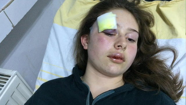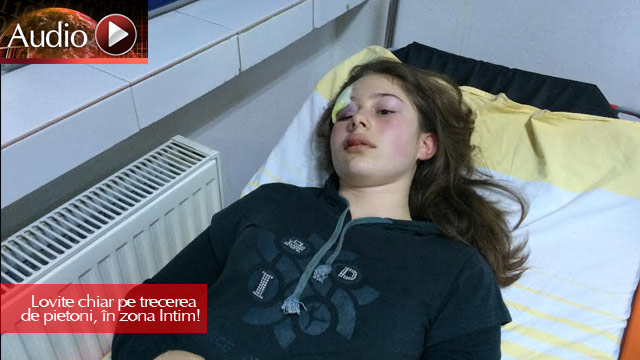 Cu faţa tumefiată în urma izbiturii (foto), cu dureri mari în zona facială, contuzii la genunchi, cu perfuzie în venă şi aflată sub atenta observaţie a medicilor de la urgenţe, Iza (14 ani) îşi aminteşte cu certitudine că s-a asigurat în traversarea străzii iar maşina a venit cu viteză şi le-a lovit în plin: