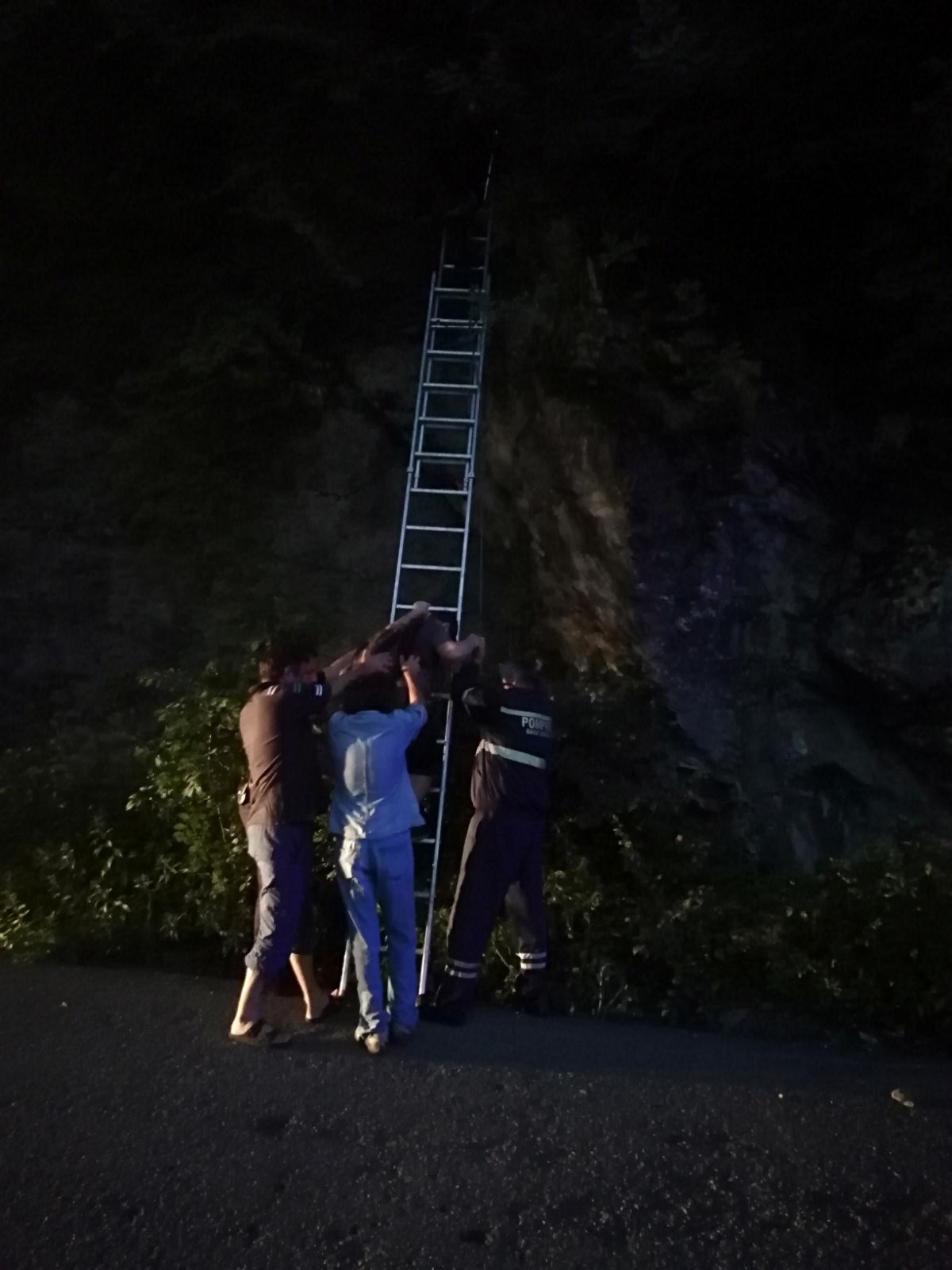 Jandarmii din cadrul Postului Stațiunea Băile Herculane s-au deplasat de urgență la fața locului și cu ajutorul unei scări metalice, au reușit să ajungă la persoana în cauză. Operațiunea de salvare a fost îngreunată, existând pericolul ca persoana în cauză să alunece în gol, aproximativ 8 m”, explică purtătorul de cuvânt al Inspectoratului Județean de Jandarmi Caraș-Severin, Marius Săndulescu.