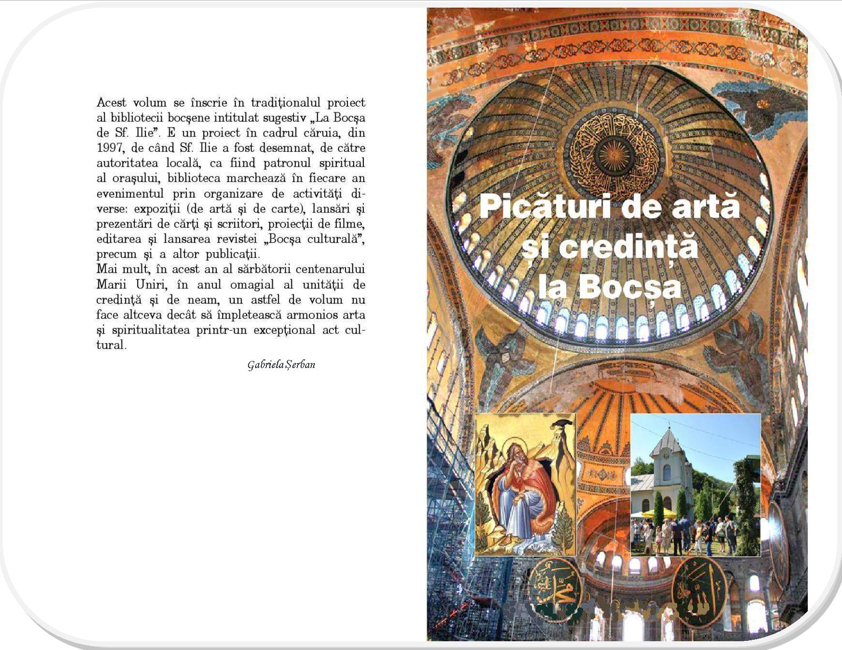 Volumul ”Picături de artă și credință la Bocșa” (coordonator Gabriela Șerban, prefață Gheorghe Jurma și imagini Nik Potocean) a apărut la editura TIM din Reșița și se înscrie în seria „Bocșa – istorie și cultură” având nr. 43 de apariție. Este un nou volum apărut sub egida Bibliotecii Orășenești „Tata Oancea”, cu sprijinul TransProtector (dir. Ionel Pau), dar și cu sprijinul și importantă contribuție a editurii TIM și a directorului acesteia, criticul Gheorghe Jurma.