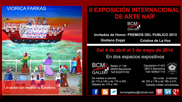 Galeria „BCM Art Gallery” din Barcelona invită pentru 4 aprilie 2014 la vernisajul unei expoziții de artă naivă cu participare internațională. Printre cei care expun se numără și Viorica Ana Farkas, membră a cercului de pictură „Deutsche Kunst Reschitza” al Forumului Democratic al Germanilor din județul Caraș-Severin.