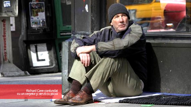 Richard Gere a fost confundat cu un cerșetor de o trecătoare, care i-a oferit, din milă, câteva felii de pizza. Actorul, în vârstă de 64 de ani, filma în acel moment o scenă din următorul său film, însă trecătoarea nu a observat și echipa de filmare.
