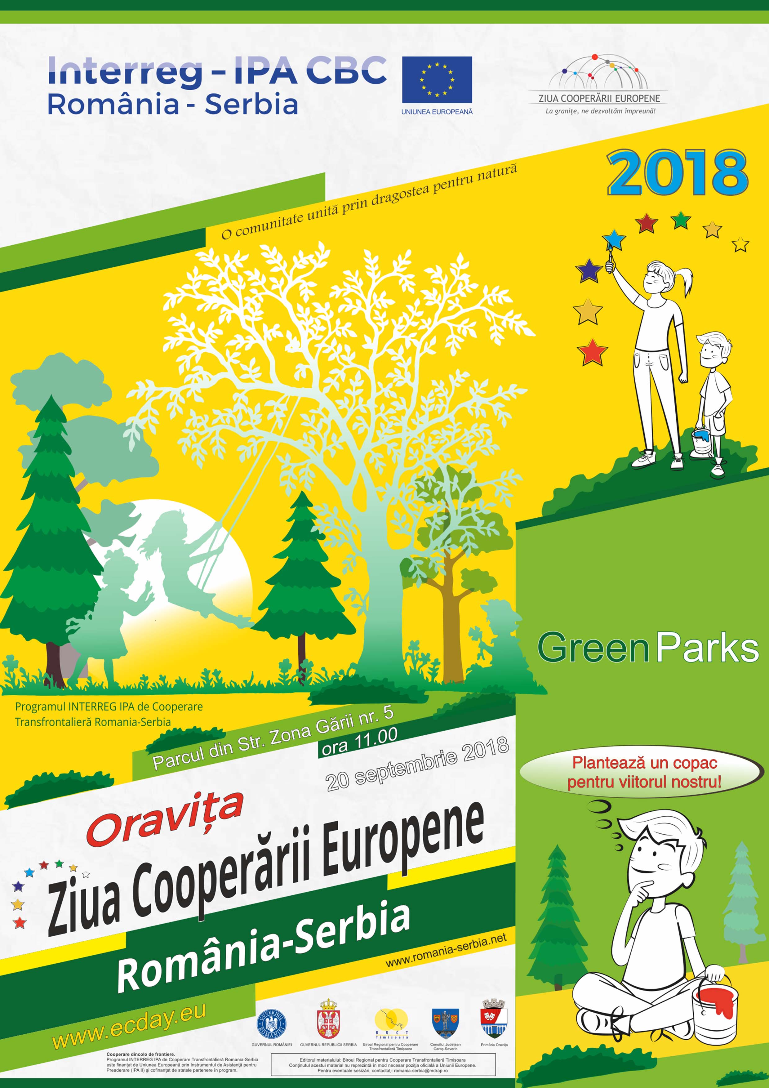 „În mod tradițional sărbătorim cu bucurie Ziua Cooperării Europene, un eveniment organizat în luna septembrie de către programele Interreg pe tot cuprinsul Europei pentru a celebra cooperareala granițele interne și externe ale Uniunii Europene. Dacă în anii precedenți am avut onoarea să aducem acest eveniment festiv atât în România la Timișoara, Reșița, Dr.Tr. Severin, cât și în Serbia la Vârșeț, Veliko Gradiște și Kikinda, anul acesta românii și sârbii se întâlnesc la Oravița.În 2018,pentru a sărbători „Ziua Cooperării Europene” în cadrul Programului INTERREG IPA de Cooperare Transfrontalieră România – Serbia, propunem organizarea unor activități de revalorificarea parcurilor urbane și de conștientizare a populației din zona transfrontalieră româno-sârbă cu privire la importanța mediului înconjurător pentru generațiile următoare.