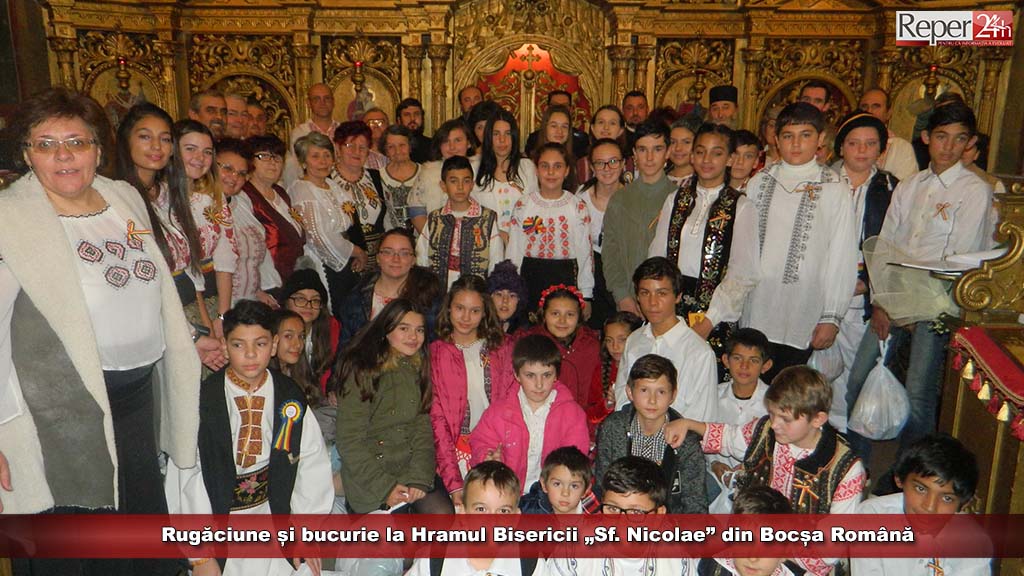 Sărbătoarea Bisericii „Sf. Nicolae” din Bocșa Română a cuprins un minunat recital de colinde al copiilor și tinerilor de la Centrul de tineret „Sf. Stelian”, coordonați de prof. Gianina Mură, dar și un extraordinar concert de colinde susținut de Corul „Armonia”, cor cu tradiție și prestigiu în cadrul mișcării corale din Banat, dirijat cu profesionalism de pr.drd. Silviu Ferciug.