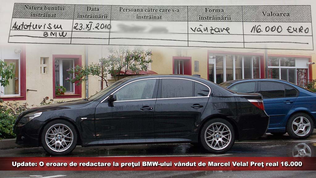 În urma sesizărilor reprezentanţilor primăriei Caransebeş şi a dialogului purtat cu primarul municipiului, Marcel Vela, s-a constatat că suma iniţială a vânzării autoturismului BMW 530 d, conţine în declaraţia de avere a edilului o greşeală scriptică a unei cifre, care a indus în eroare. În loc de 116.000 euro, suma vânzării autoturismului a fost de 16.000 euro, fapt ce schimbă toate datele acestui act comercial şi ceea ce derivă din acesta.