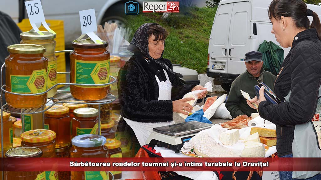 Zarvă mare în fața gării din Oravița, acolo unde roadele toamnei au fost expuse la loc de cinste pe rafturi și tarabe în așteptarea clienților pofticioși.