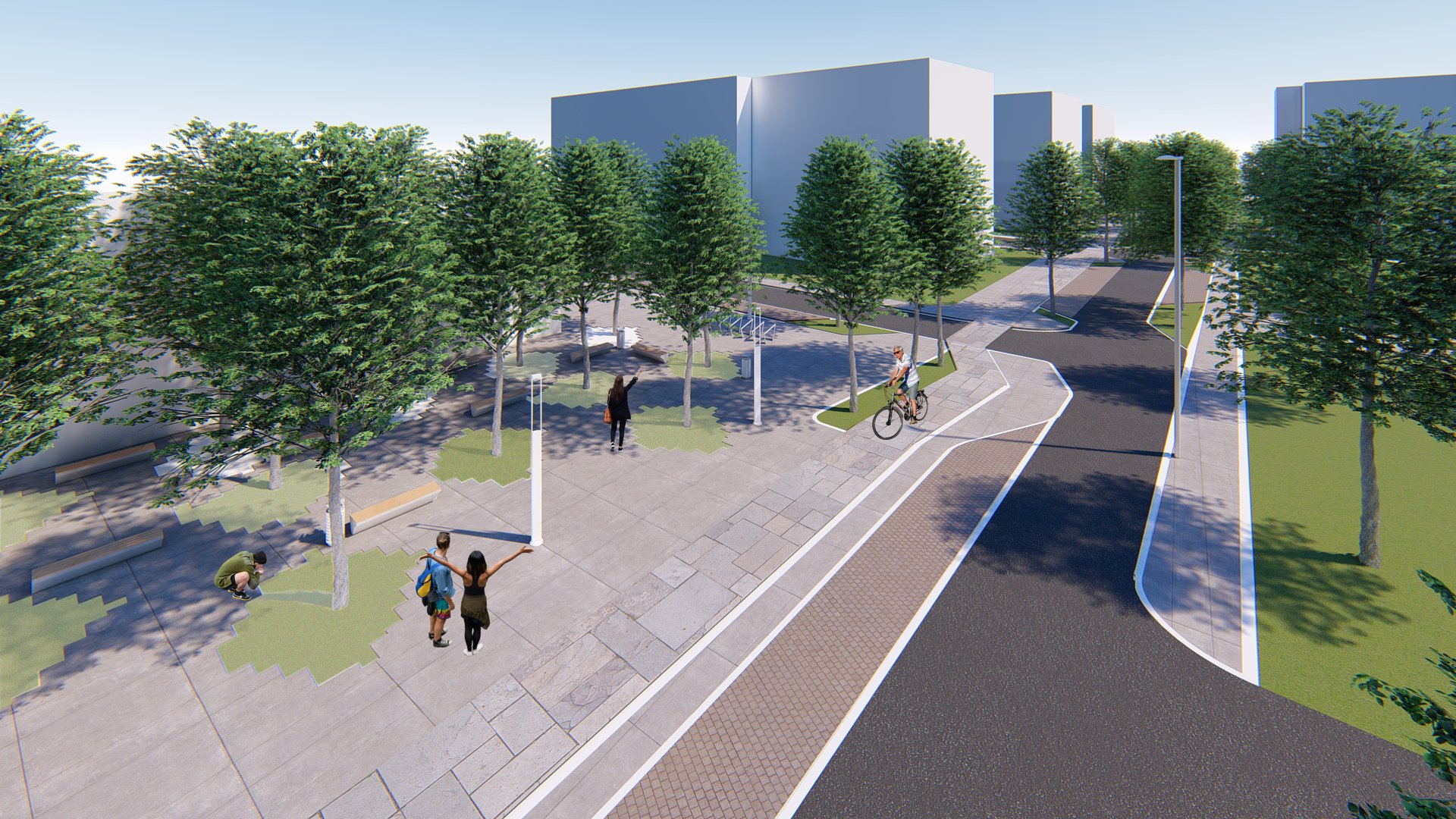 Investiția presupune amenajarea de piste de biciclete și alei pietonale, transformarea străzii Bielefeld în spațiu pietonal, crearea și amenajarea specifică a unor piațete de cartier, zone de întâlnire și repaos, montarea unui sistem de ghidaj tactil pentru creșterea nivelului de accesibilitate pentru persoane cu dizabilități, refacerea instalației de iluminat public, realizarea de lucrări edilitare pentru colectarea apelor pluviale de pe carosabil, echiparea cu utilități și infrastructură a celor șase străzi pentru acomodarea de diverse evenimente și activități în funcție de necesități, amenajare peisagistică și amplasare mobilier urban.