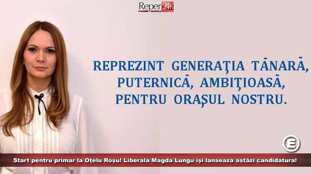 Un moment așteptat pentru liberalii de pe Valea Bistrei, va fi lansarea candidaturii unui politician tânăr, Magda Florentina Lungu, pentru funcția de primar al orașului Oțelu Roșu, precum și a echipei sale de candidați liberali pentru Consiliul Local al urbei. Cu această ocazie, candidatul PNL își va expune proiectul pe care îl are pentru mandatul 2016  – 2020 și primele acțiuni pe care le vizează după câștigarea alegerilor locale de la Oțelu Roșu din 5 iunie.  În administrația publică, Magda Lungu a mai ocupat funcția de viceprimar al orașului Oțelu Roșu, după alegerile câștigate de Alianța USL, în 2012.