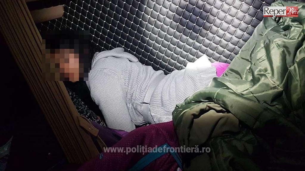 La controlul de frontieră a fost descoperită, ascunsă în spatele banchetelor, în locul destinat șoferului pentru odihnă, o persoană de sex feminin. Deoarece nu avea documente asupra ei, în baza declarației verbale, polițiștii de frontieră au efectuat verificări și au stabilit că persoana este cetățean român minor, în vârstă de 17 ani. La cercetări, șoferul mijlocului de transport a declarat că tânăra nu are documente de identitate și nici procură notarială din partea părinților, iar aceasta a recurs la această metodă deoarece voia să ajungă în Germania împreună cu prietenul ei, un cetățean român în vârstă de 20 de ani, care era pasager în același microbuz.