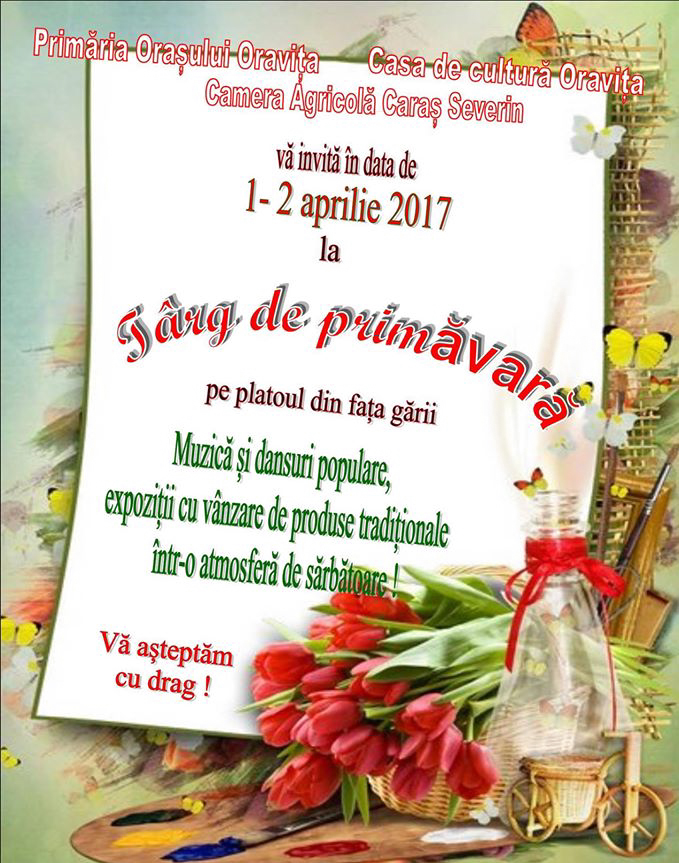 Primăria orașului Oravița și Consiliul Local cu sprijinul Direcției pentru Agricultură Județeană Caraș-Severin organizează, în perioada 1 – 2 aprilie a.c., cea de-a doua ediție a Târgului de Primăvară de la Oravița.