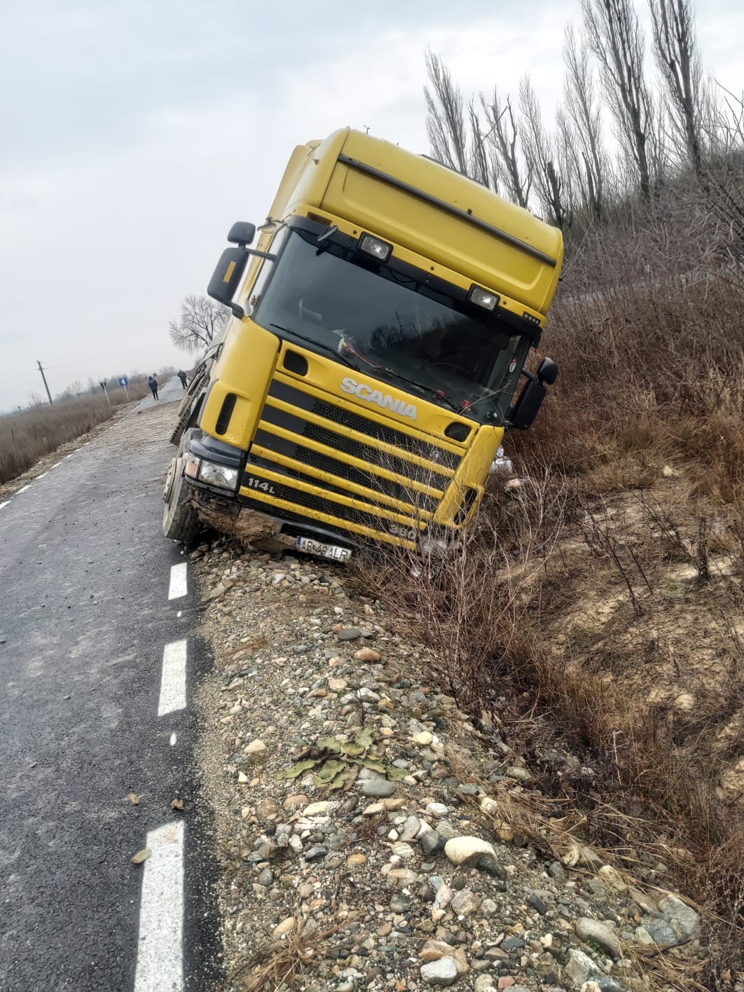 Un TIR a ieșit în decor în această dimineață, în apropierea comunei Păltiniș din județul Caraș-Severin.