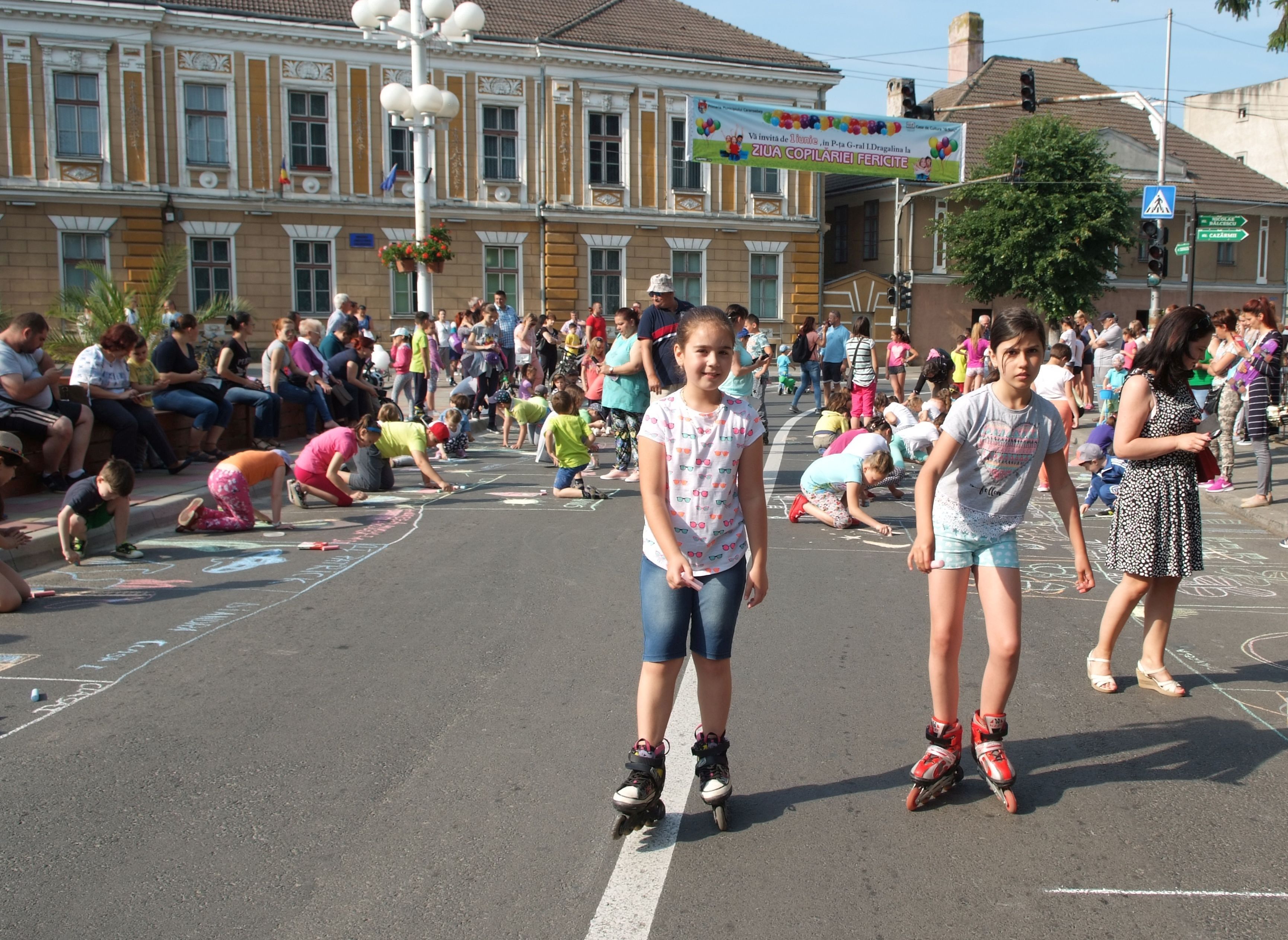 Astfel, la Cinematograful „Luna” cei mici au putut viziona patru reprezentaţii cu filmele „Cine-i şeful?” şi „Şcoala Iepuraşilor: Păstrătorii Oului de Aur”, în Piaţa „G-ral Ioan Dragalina”, şi-au putut manifesta înclinaţiile artistice desenând pe asfalt, după care au luat startul în Crosul Tinereţii şi au făcut o promenadă pe biciclete, role, trotinete şi skateboard-uri.