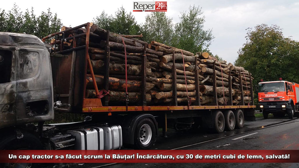 Un cap tractor s-a făcut scrum la Băuțar! Încărcătura cu 30 de metri cubi de lemn, salvată!